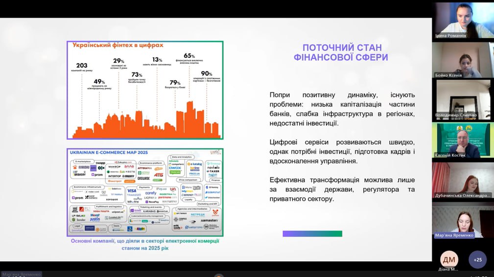 Розпочав пленарне засідання здобувач першого (бакалаврського) рівня вищої освіти, спеціальність 103 «Геологія», Київський національний університет імені Тараса Шевченка, здобувач першого (бакалаврського) рівня вищої освіти, спеціальність 101 «Екологія», Національний університет «Києво-Могилянська академія» Станіслав Горошков із темою «Трансформаційний вплив цифрових валют цнтральних банків (CBDC) на глобальну банківську систему» де наголосив, що CBDC представляють собою цифрову форму фіатних грошей, яка забезпечує більш швидкі, безпечні та прозорі платежі порівняно з класичними банківськими операціями, а особливості трансформації цифрових валют центральних банків включає такі аспекти: посилення контролю центральних банків над грошовою масою та операціями, що сприяє кращому регулюванню економіки і монетарній стабільності; зменшення ролі комерційних банків як посередників у платежах, що пов’язано з тим, що користувачі можуть тримати кошти безпосередньо в цифрових гаманцях центрального банку, зменшуючи обсяги депозитів у традиційних банках; покращення ефективності міжнародних розрахунків шляхом зниження транзакційних витрат і часу обробки платежів, що може змінити глобальну систему міжбанківських переказів; підвищення фінансової інклюзивності, оцифровуючи доступ до банківських послуг різних верств населення, особливо у регіонах із недостатньою банківською інфраструктурою; впровадження більш жорсткого контролю за фінансовими потоками, що підвищує прозорість операцій і допомагає боротися з фінансовими злочинами, такими як відмивання грошей.
