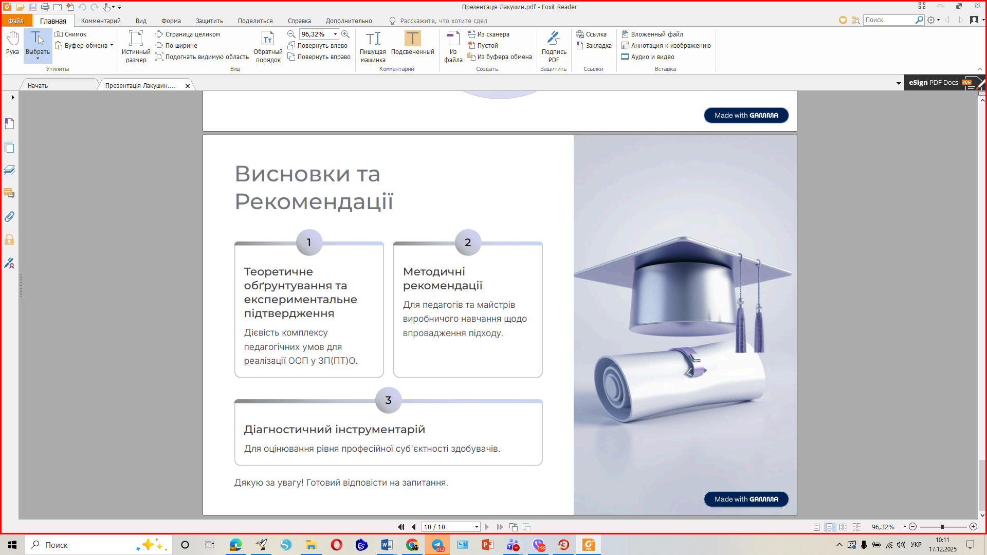 Представлені кваліфікаційні роботи мали виражену практичну спрямованість, ґрунтовну теоретичну основу та відповідали актуальним викликам системи професійної освіти в умовах воєнного стану й цифрової трансформації освітнього середовища.