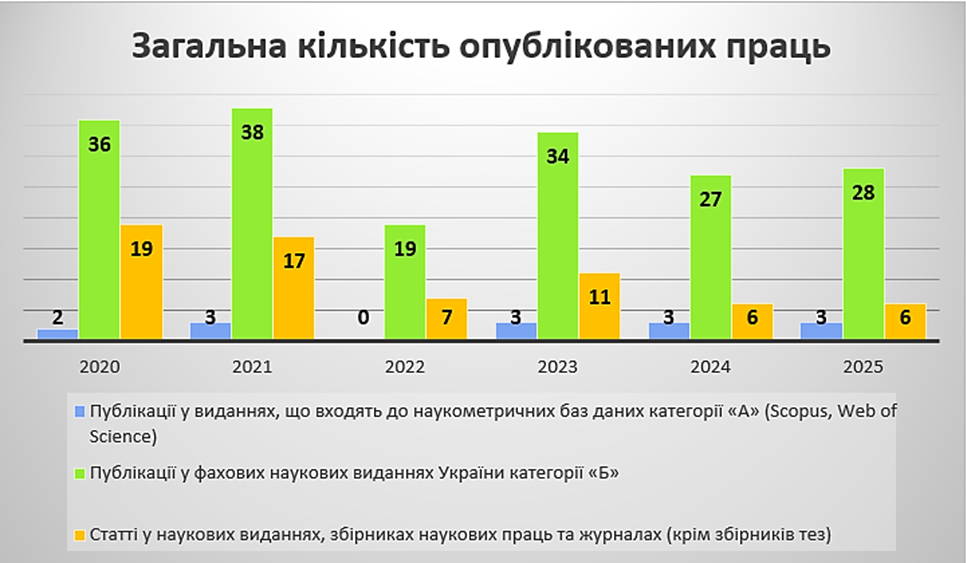 Наукову роботу кафедри та підготовку здобувачів вищої освіти до участі в конкурсах наукових робіт і олімпіадах здійснюють 9 науково-педагогічних працівників кафедри: серед них – 3 доктори наук (зокрема 2 професори), 4 кандидати наук, 5 доцентів та 2 старших викладачі.